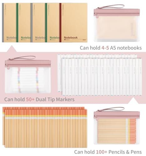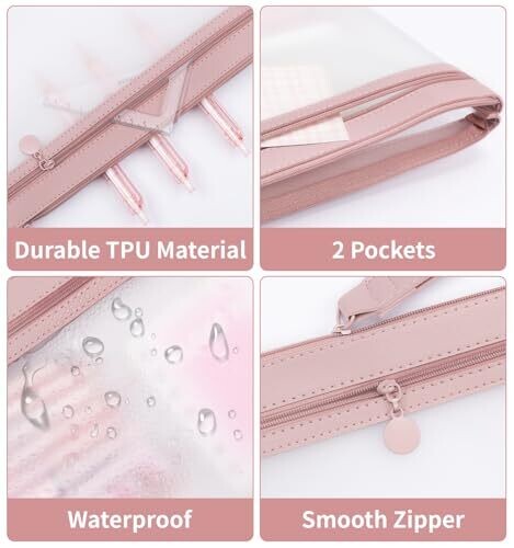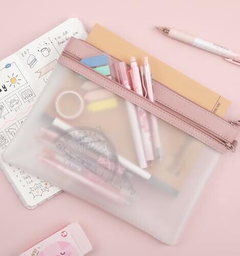 - Available in a chic pink finish that pairs with any bag or backpack, offering versatile storage for pencils, makeup, cables, and small essentials.