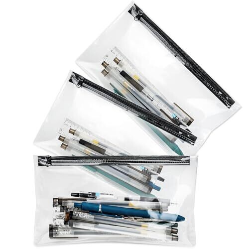 Clearview Clear Pencil Case Trio – 3pcs Transparent PVC Pouches for Exams