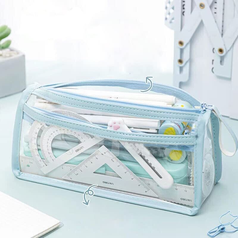 FIYUK Clear Pencil Case Bag Pen Holder, Blue – Portable & Stylish