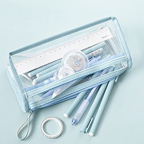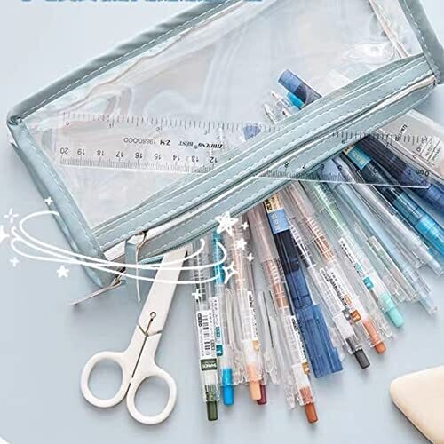 - Experience modern organization with the FIYUK Clear Pencil Case Bag Pen Holder in a sleek blue finish.