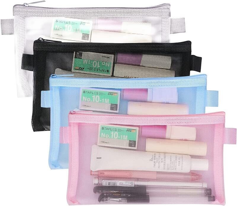 Novamesh Clear Mesh Pencil Bags — 4-Pack Zipper Case Set