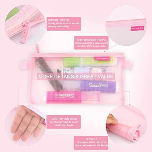 - See-through mesh keeps your essentials visible at a glance, making study, travel, and daily tasks smoother and more organized.