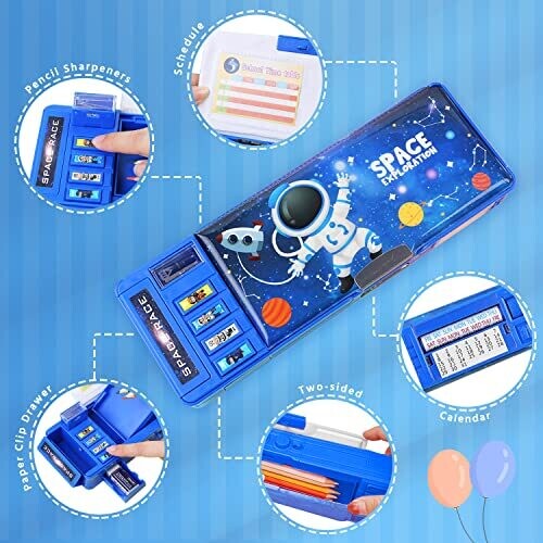 - Pop Up multifunction pencil case with built-in features like a sharpener, schedule planner, and whiteboard for creative note keeping.