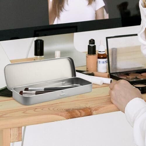 GLADFRESIT Metal Rectangular Pencil Case for Pens and Makeup — Durable Tin