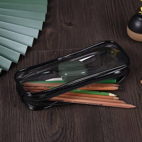 - Experience a sleek, transparent case designed to organize pencils, pens, cosmetics, and small essentials with ease.