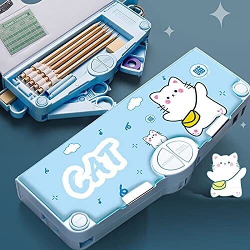 - Two compartments provide separate spaces for pencils, pens, erasers, and small accessories, making it easy to stay tidy throughout the school day.