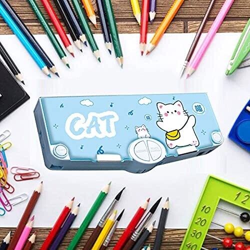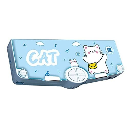Minache 2-Compartment Pencil Case with Cartoon Pattern and Magnetic Cover