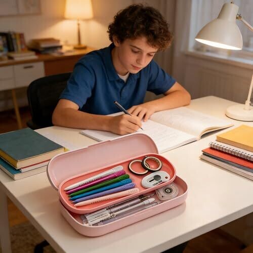 - Double Layer Hard Pencil Cases, Plastic Pencil Case for Middle School with Lid Snap and Compartments, Waterproof Pencil case Pink 1Pack
