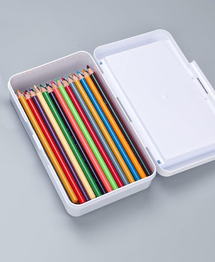 Pencil Pro Double Layer Pencil Box - Durable Hard Case with Snap Lid, 2 Compartments