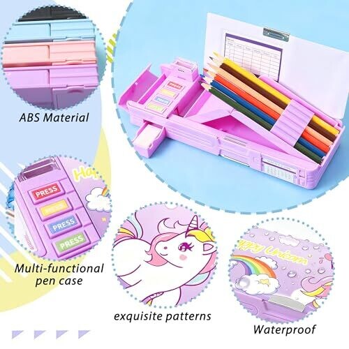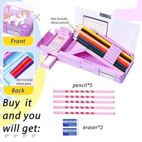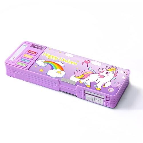 Purple Unicorn Pop Up Pencil Case with Lock, Schedule Board & Whiteboard