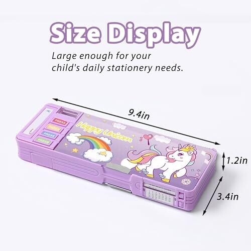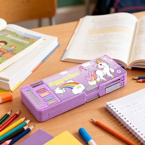 - Features a secure double password lock for peace of mind and a playful purple unicorn theme that stands out in any backpack or desk.
