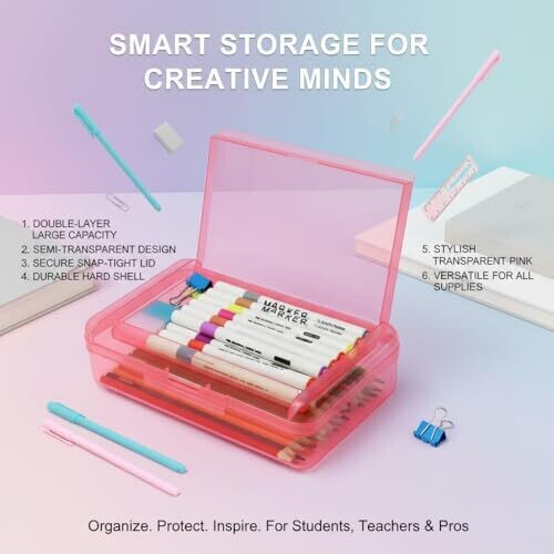 - Experience organized, versatile storage with a durable hard plastic pencil case designed for students, artists, and professionals.