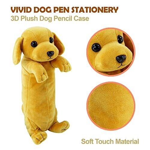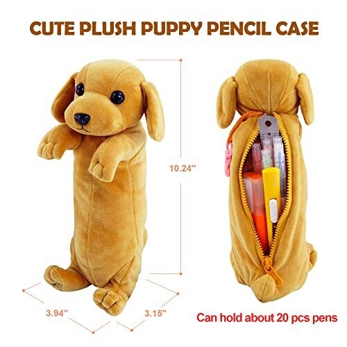 - Soft plush exterior and friendly 3D dog design make it a fun companion for storing pens, pencils, and small accessories.