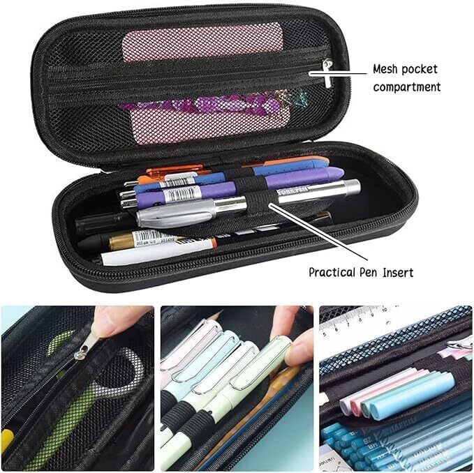 - Large capacity with separate pen tray and mesh pocket to organize items
