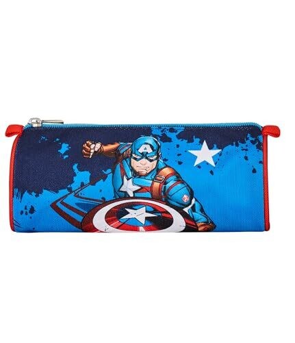 - Unleash superhero style with this Captain America Legendary Avengers School Pencil Case in blue, red, and white—the perfect companion for kids who love Marvel and organization.