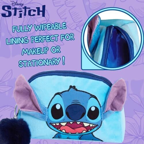 Disney Stitch Velvet Make Up Bag Double-Sided | Travel Cosmetic Case