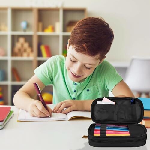 - Large capacity with two compartments keeps pencils, markers, erasers, and small accessories neatly organized for quick access between classes.