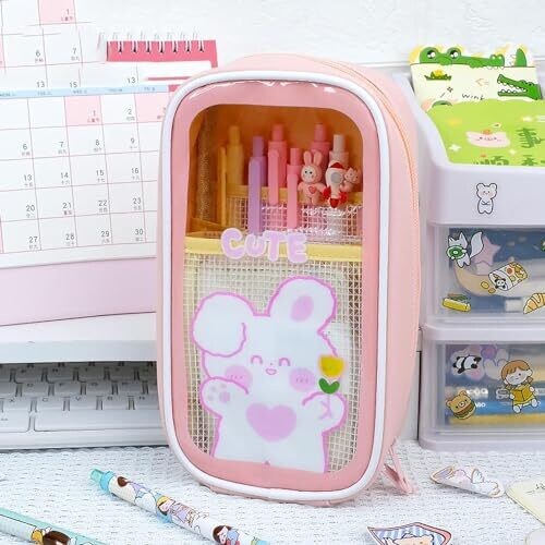 Kawaii Aesthetic Pencil Case: Clear Pouch, Large Capacity, Stationery Bag