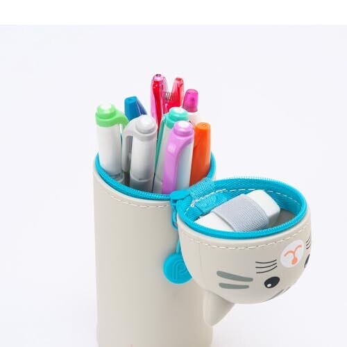 LIHIT LAB Kawaii Cat Stand-Up Pencil Case for School, office, College