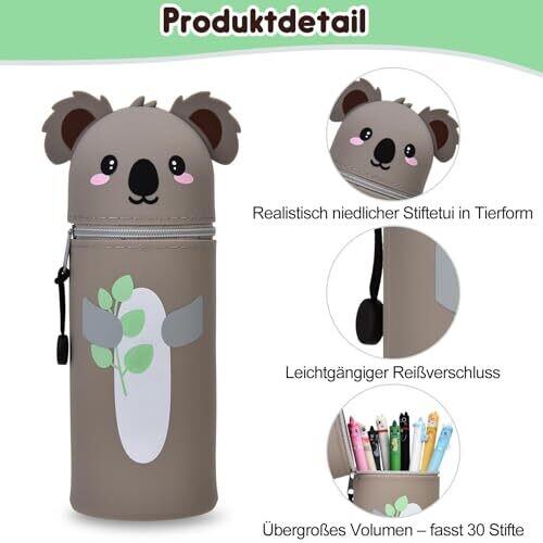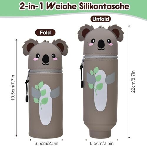 Lvzongxin Kawaii Pencil Case 2-In-1 Soft Silicone Desk Holder — Koala
