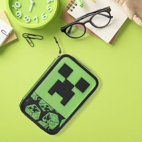 - Official Minecraft pencil case designed for kids and teens, with three compartments and a practical layout for school or travel.