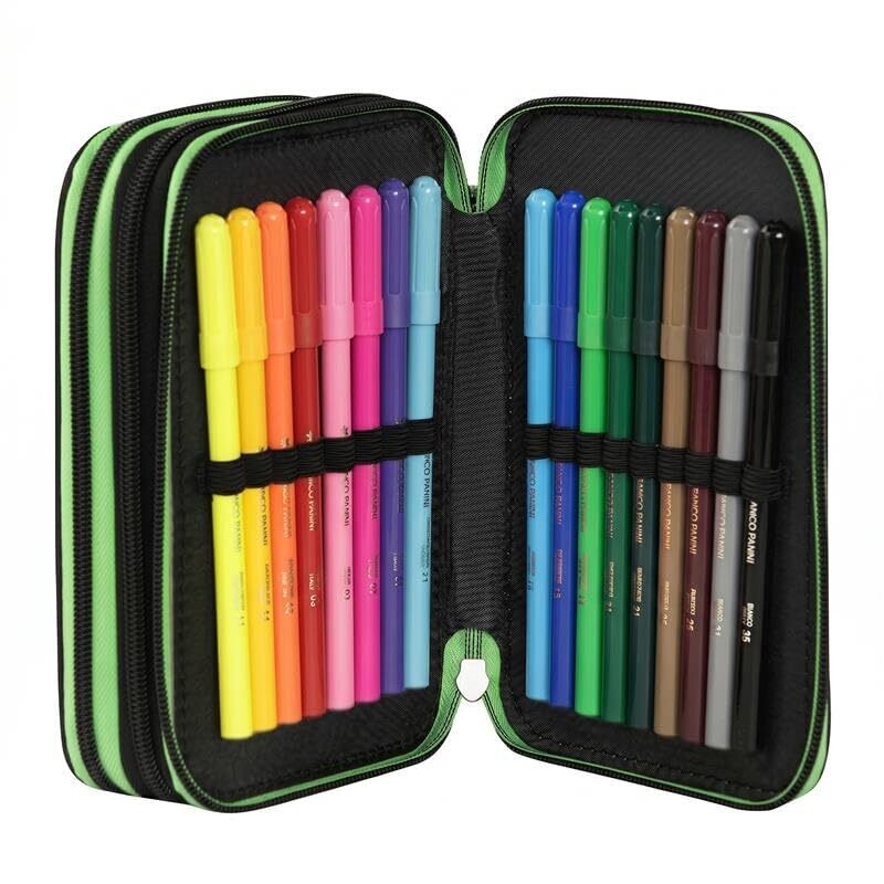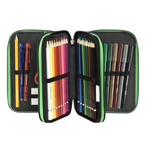 - Three spacious compartments with elastic loops to organize pens, pencils and markers, plus a zipper for secure storage.