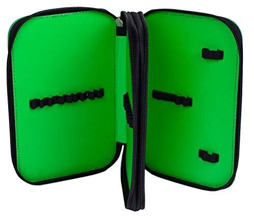 Minecraft Pencil Case with 2 Flaps, Black/Green – Standard Size