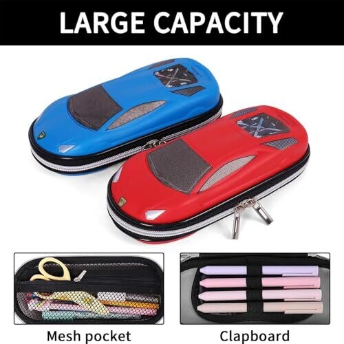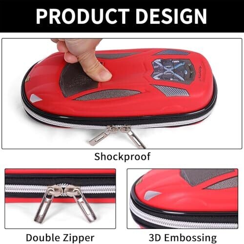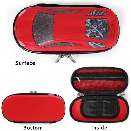 - 3D EVA car-inspired exterior and a versatile three-layer design that keeps supplies organized and protected.