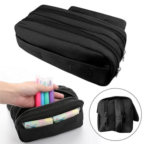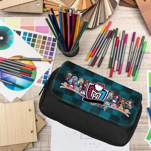 - Large-capacity pencil case designed for school and office use, featuring a practical flip design that protects contents while adding a touch of style.