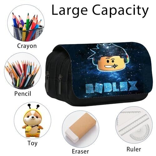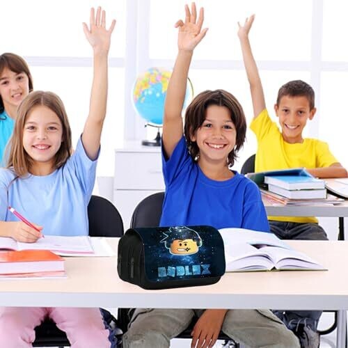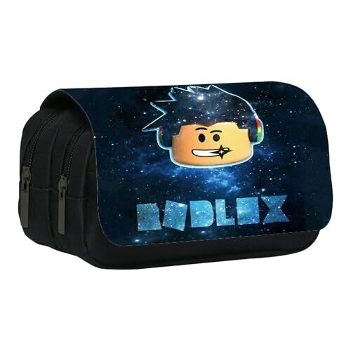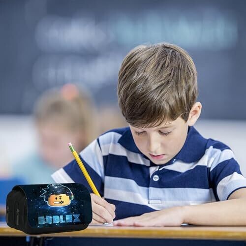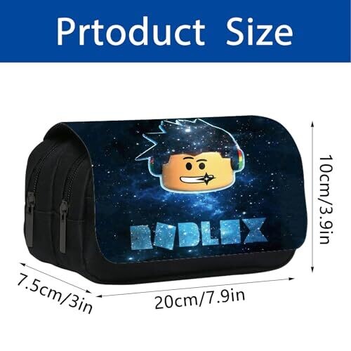 Wkxinxuan Roblox Pencil Case for Kids - Blue Cartoon Stationery Organizer with Zipper