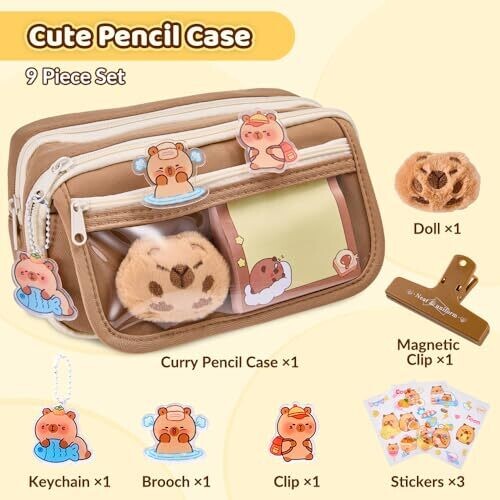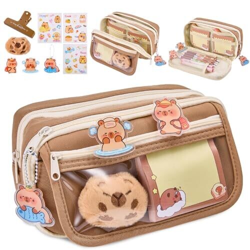 WOTOW Capybara Pencil Case - Large 9-Compartment Organizer with Plush Extras