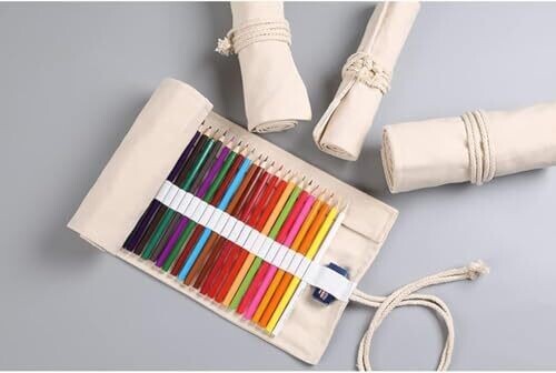 Artnova Large-Capacity Canvas Roll-Up Pencil Case with 36 Slots