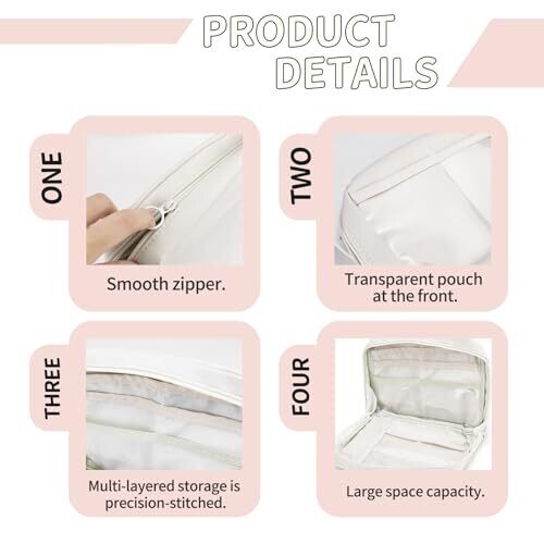 - Standing pouch helps keep contents tidy and easily accessible, with smooth zippers for quick access.