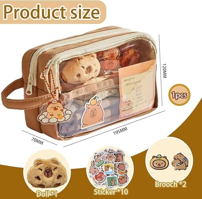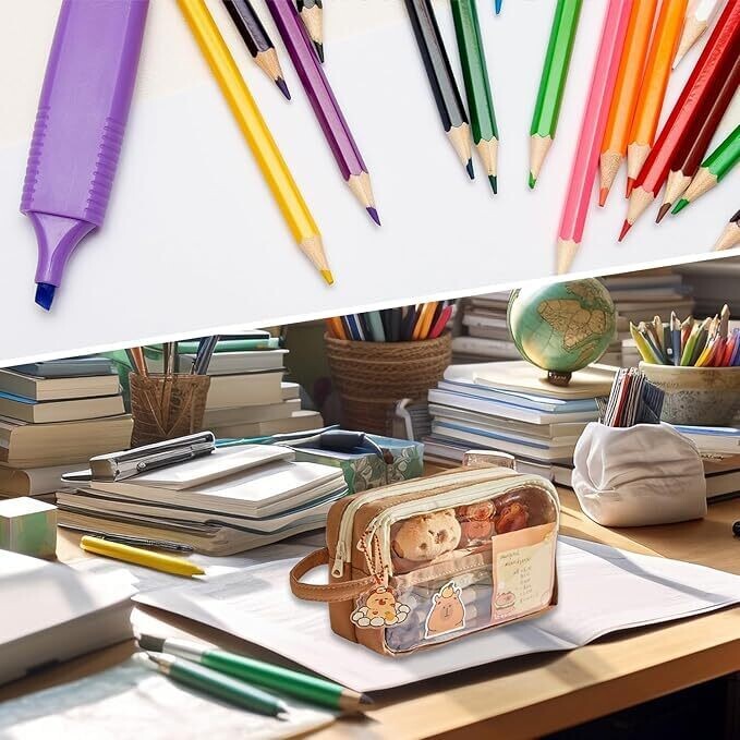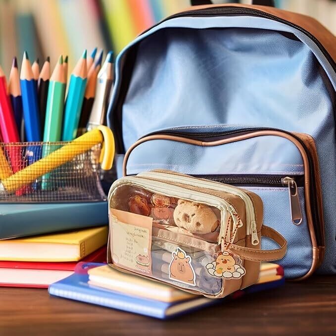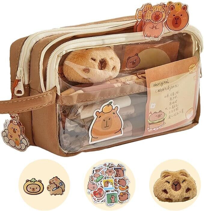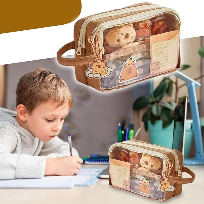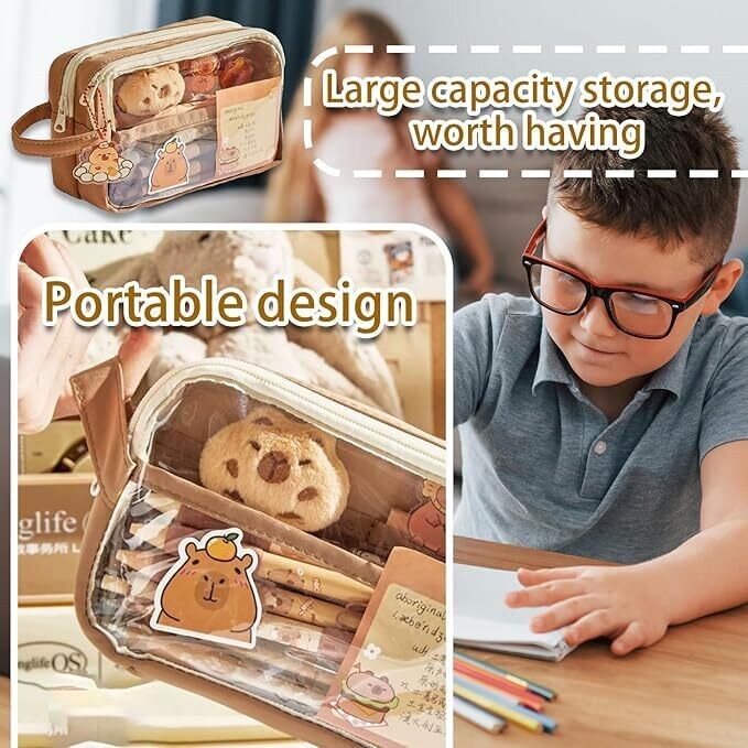 - Meet the Capybara Large Capacity Pencil Case, a cute, transparent multi-layer pouch designed to keep supplies organized in style.