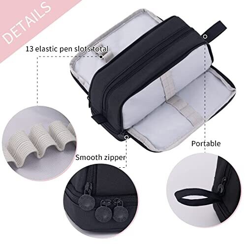 - Dual-zipper design for easy access and secure storage of pens, pencils, markers, erasers, and other small office supplies.