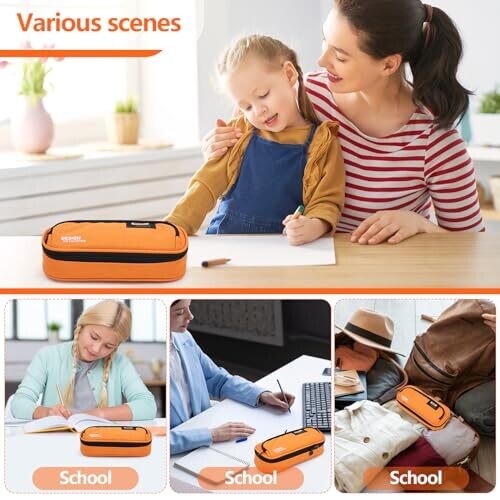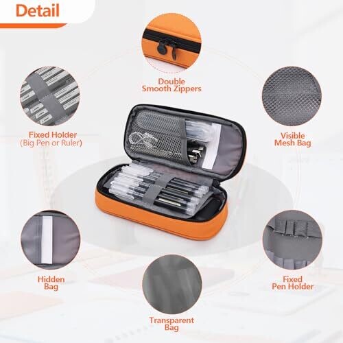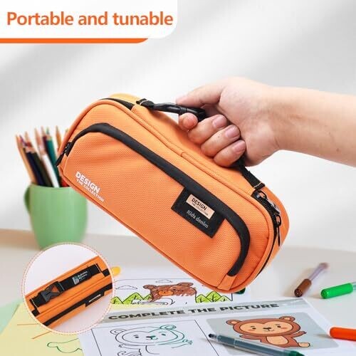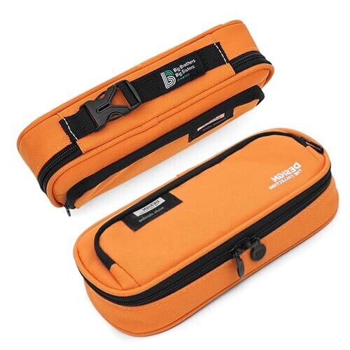 Pendancy Large Capacity Pencil Case with Double Zippers and Portable Carry Handle – Orange