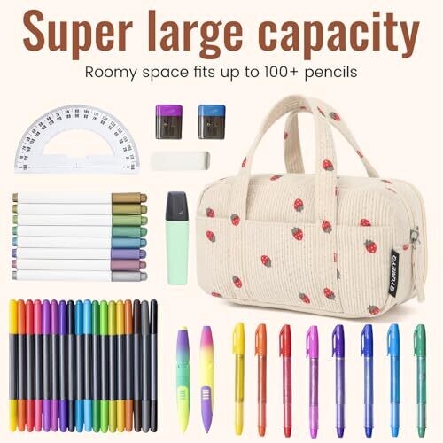 QYQMEYQ Large Pencil Case Pouch – Corduroy 5-Compartment Organizer