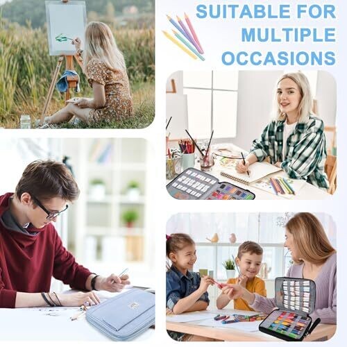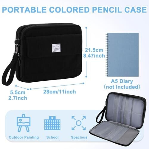 • Designed for travel and daily use, it features a detachable hand strap for effortless carrying and a compact, spacious interior that fits a full art or school supply kit.