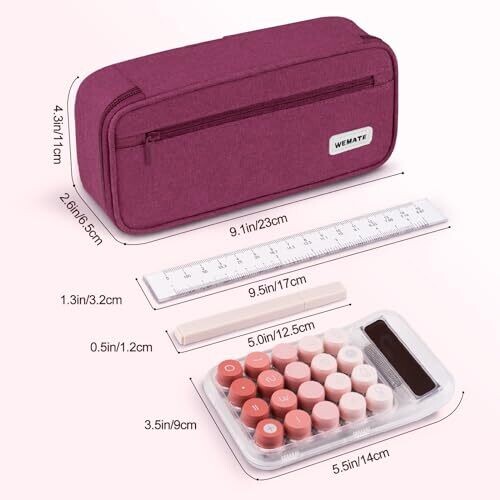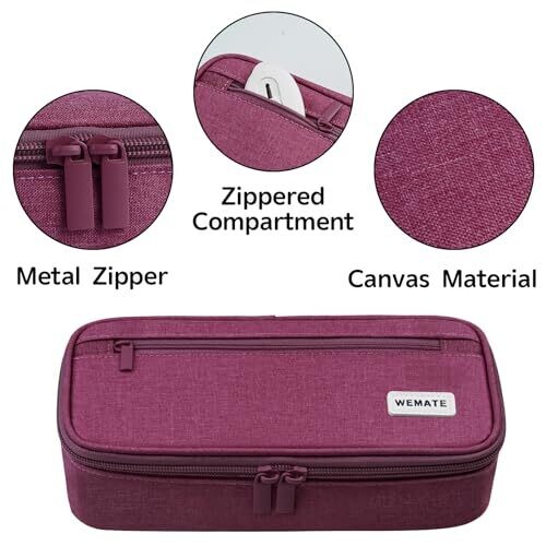 WEMATE Large Pencil Case for Men & Women – High Capacity, Purple Red