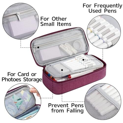- Generous capacity without bulk, so you can carry a large assortment of writing tools and cosmetics in a single, compact pouch.