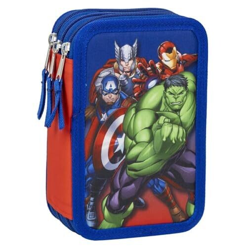 Avengers Cartoon Pencil Case with Three Zip Compartments – Complete Set