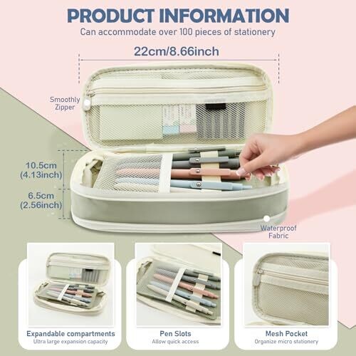 - Keep your supplies neatly stored in a large-capacity pencil case with multiple compartments and a smooth zipper for easy access.