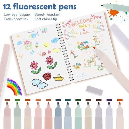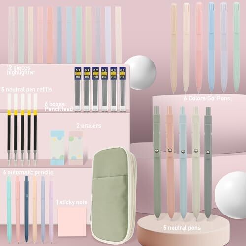 Brand Pencil Case Stationery Set - 12 Highlighters, 6 Mechanical Pencils, 11 Gel Pens for Teens