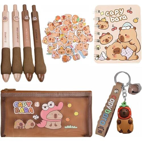 Capybara Stationery Set – Cute Pencil Case with 4 Pens, Notebook, 50 Stickers & Keychain