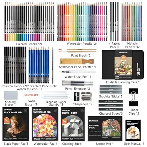 - Shuttle Art 116 piece sketching and drawing set designed to ignite creativity for artists of all levels.