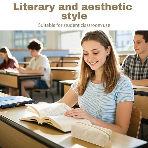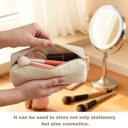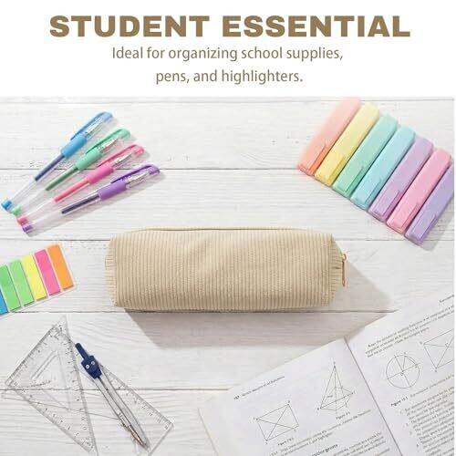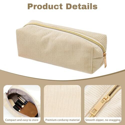 - Elevate your everyday organization with a stylish corduroy pencil case in aesthetic beige, designed to accompany you at school, the office, or on the go.