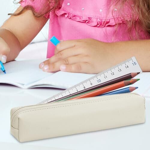 - Stylish PU leather pencil case with a slim, compact design that fits easily into bags and backpacks.