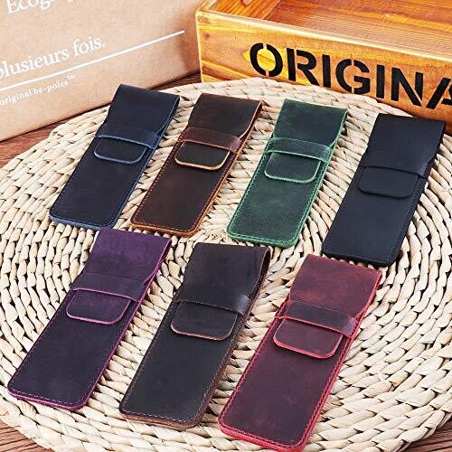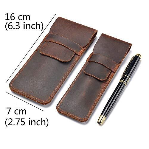 Daimay Leather Pen Case - Handmade Crazy Horse Pouch for Multi Pens