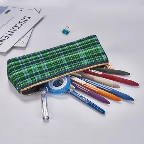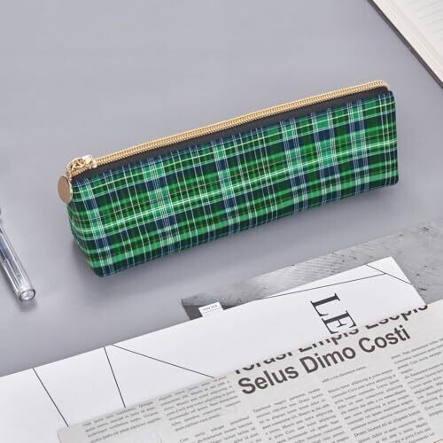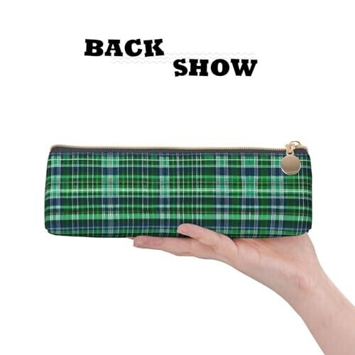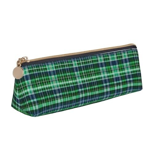 - Experience organized style with this DRTGEDS Blue and Green Scottish Tartan multifunctional leather pencil case, designed to keep your essentials neatly stored and easily accessible.