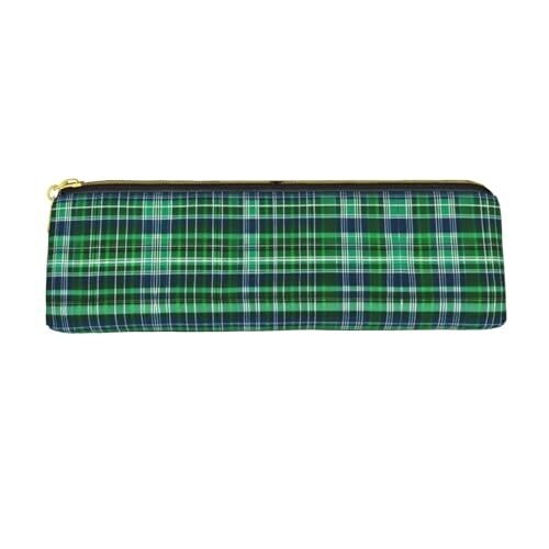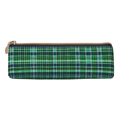 DRTGEDS Blue and Green Scottish Tartan Multifunctional Leather Pencil Case with Storage